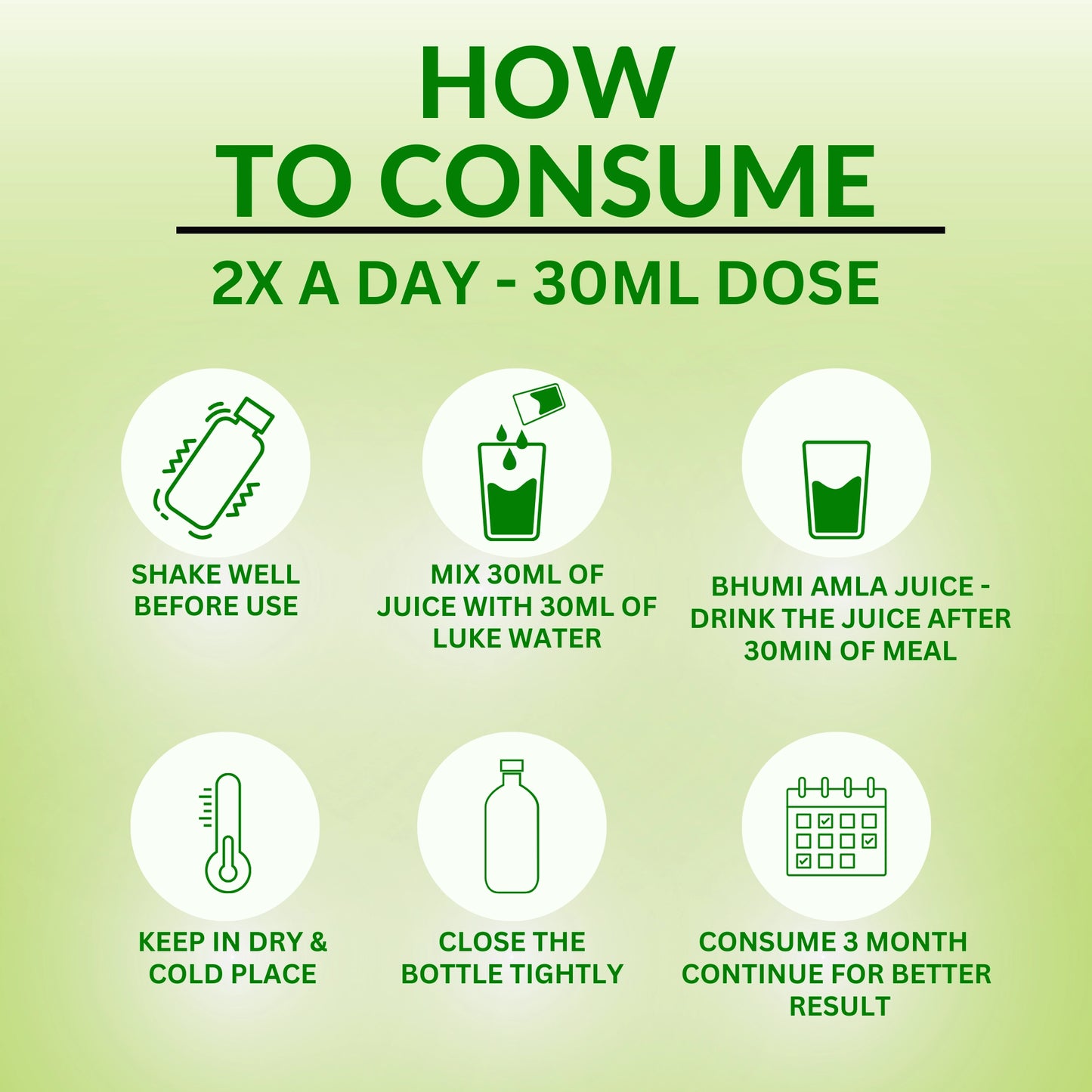Consume twice daily, 30 minutes after meals for best digestive and detox benefits.